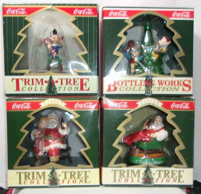 Title (ebay affiliate link): 4 COCA-COLA CHRISTMAS TREE ORNAMENTS IN THE ORIGNAL BOXES - ELVES & SANTA CLAUS