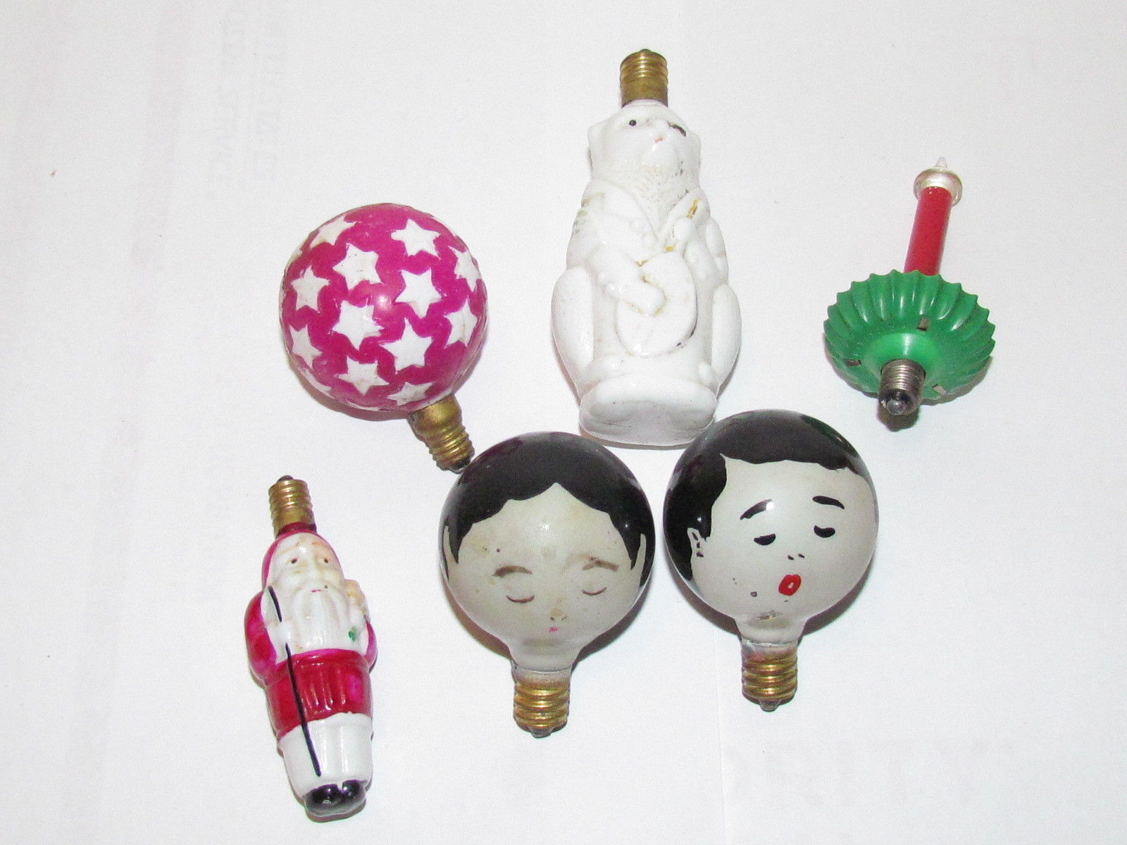 6 - VINTAGE CHRISTMAS BULBS LIGHTS FIGURAL SANTA BUBBLE LITE FACES STAR BEAR