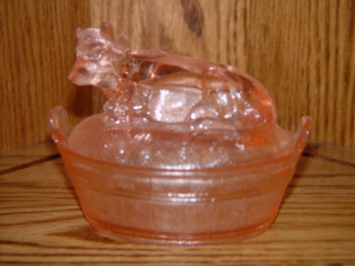 ADORABLE PINK DEPRESSION COW CANDY DISH