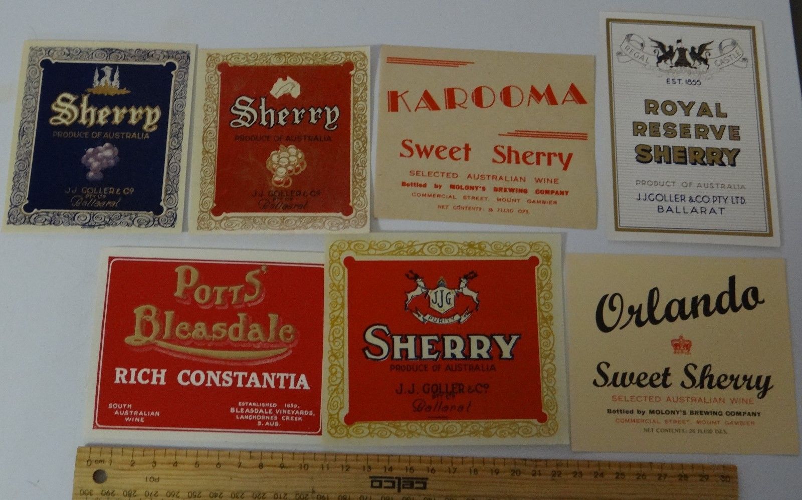 7 x VINTAGE SHERRY FORTIFIED WINE COLLECTABLE LABELS