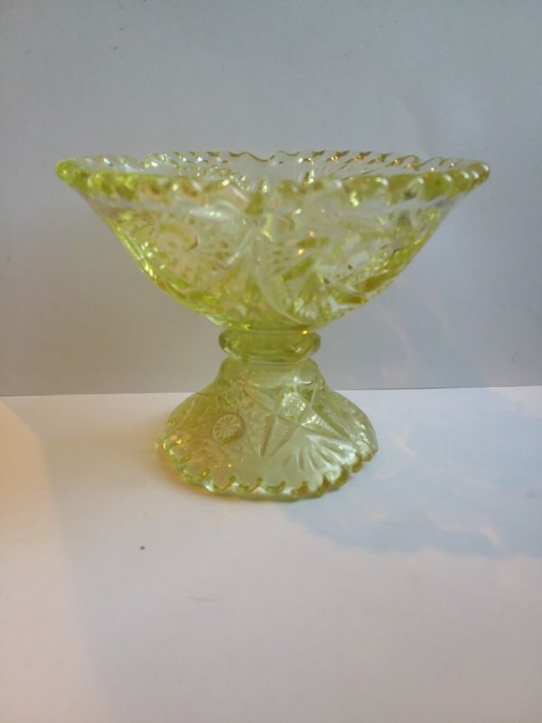 Beautiful Vintage Yellow Green Pattern Glass Compote