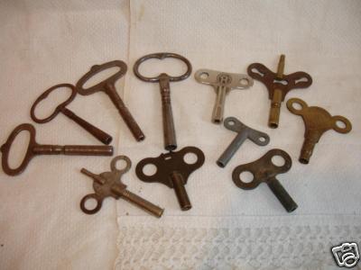 Lot Of 11 Old Antique Clock Movement Keys Parts