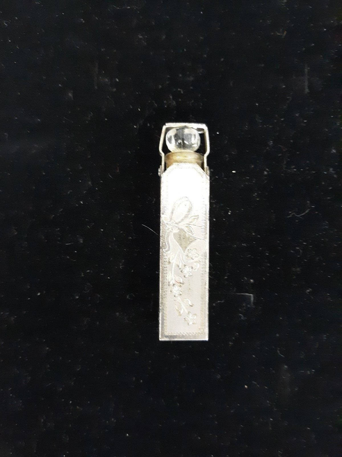 Vtg Wells Etched Sterling silver Vial Bottle Holder Spring Loaded