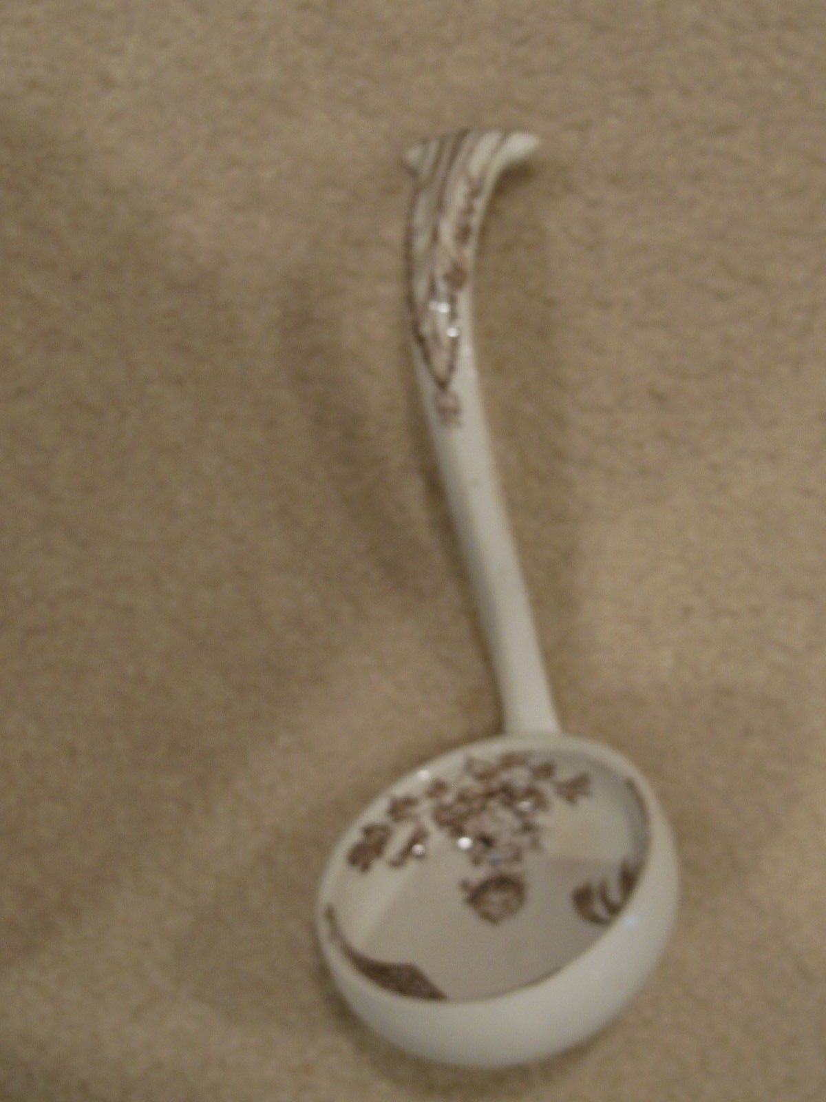 RARE BROWN TRANSFERWARE LADLE - TRELLIS PATTERN BY WEDGWOOD, 1880