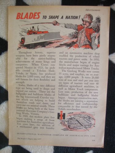 Title (ebay affiliate link): 1957 International Harvester BLADES Shape A Nation Aussie Original Mag Advert