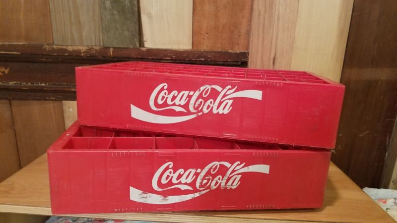 Title (ebay affiliate link): 2 Vintage Plastic RED Coca-Cola Coke Bottle Carrier Crate Case Rack - Holds 24 -