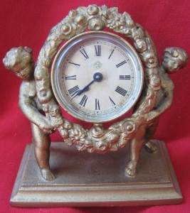 Title (ebay affiliate link): Antique Ansonia Figural Paper Dial Desk / Mantle Clock