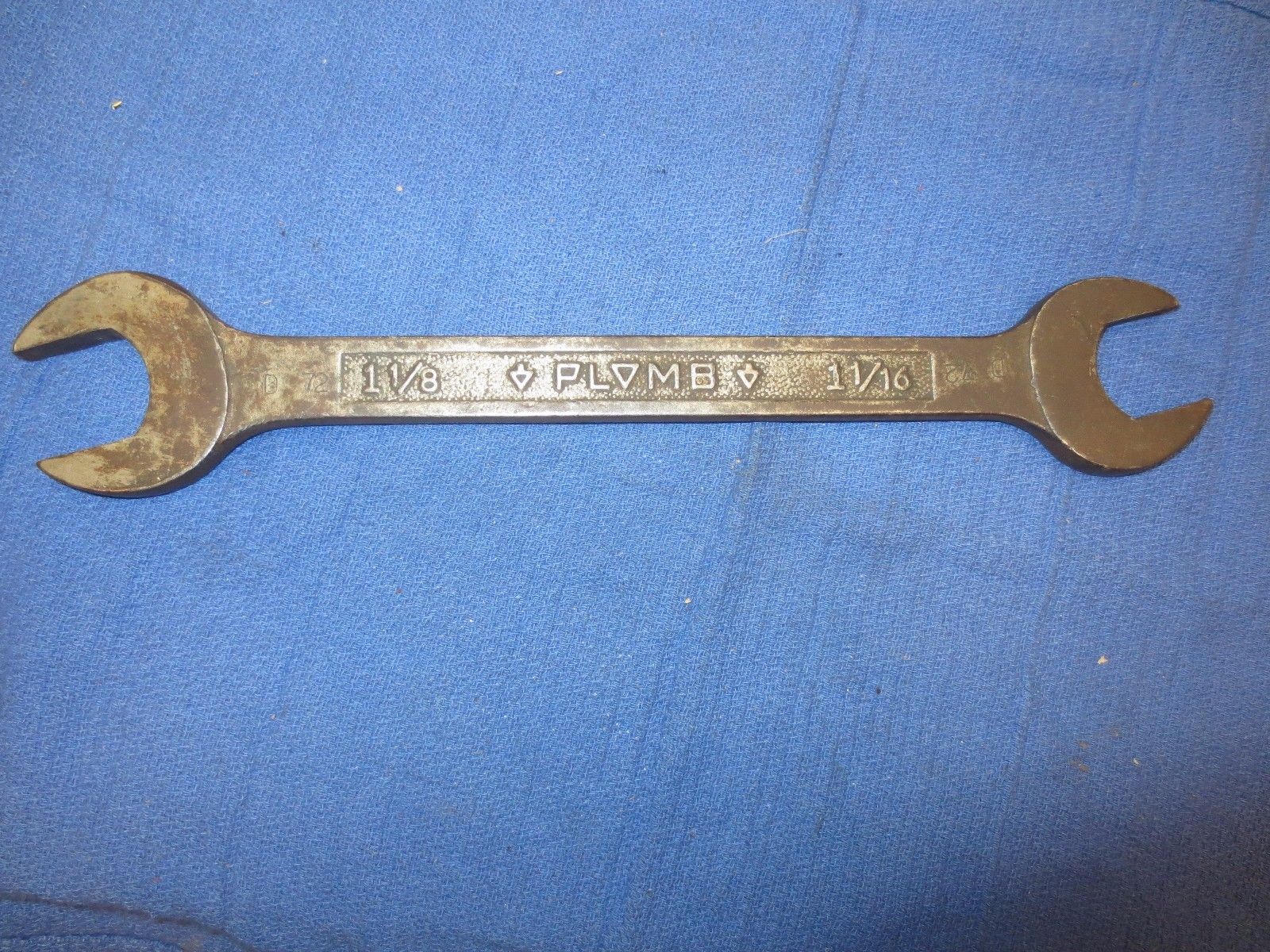 Title (ebay affiliate link): vintage PLVMB TOOL CO 3050 1-1/16 x 1-1/8 Open End Wrench Pebble Finish USA