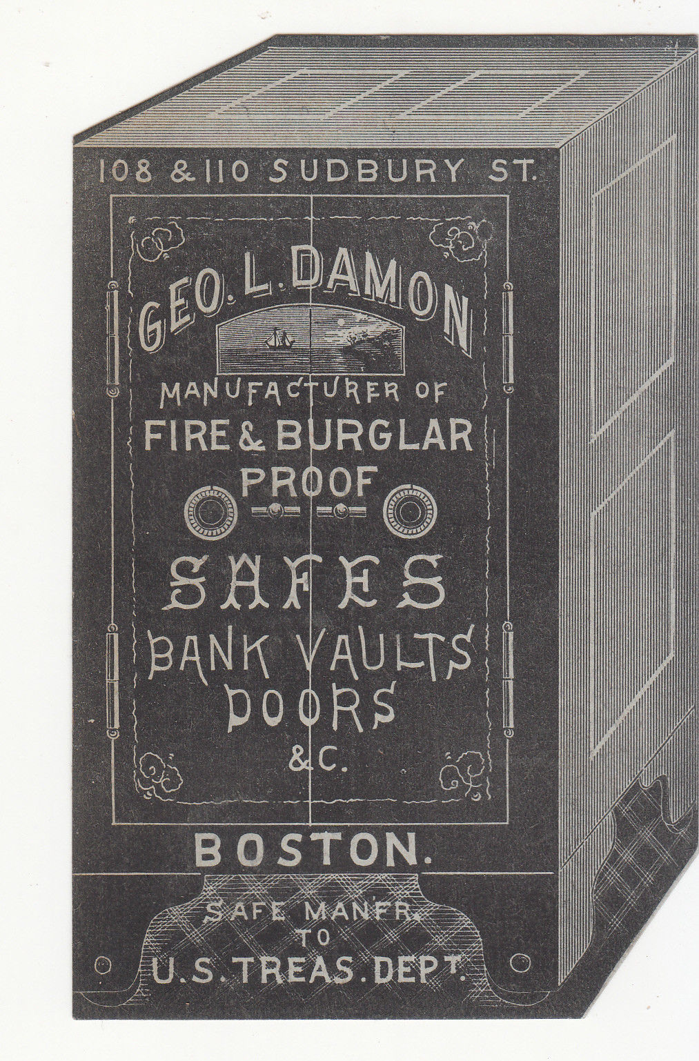 George L Damon Fire & Burglar Proof Safes Bank Vaults U S Treasury Card c1880s