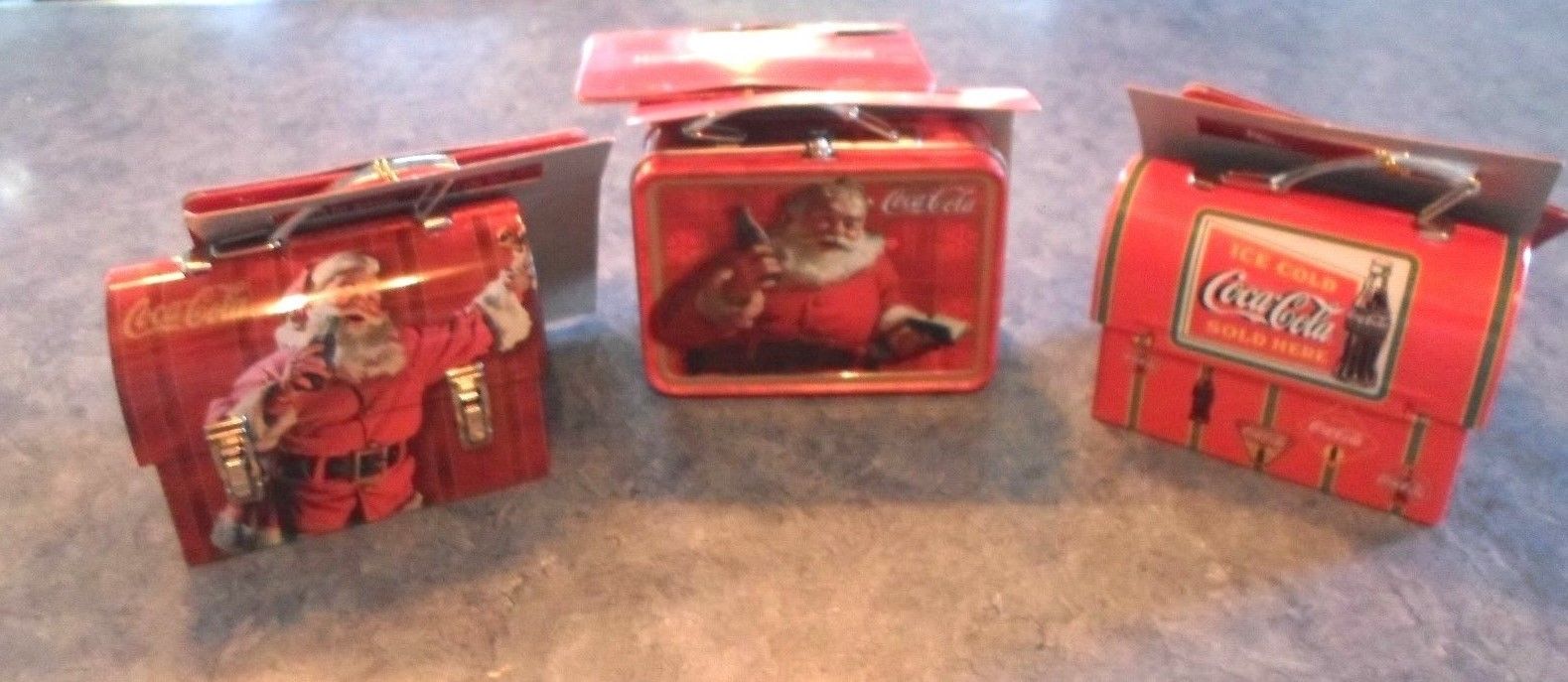 Title (ebay affiliate link): Miniature Coca-Cola Santa Claus Lunch Boxes Lot Of 3 Tin Ornament Christmas Coke