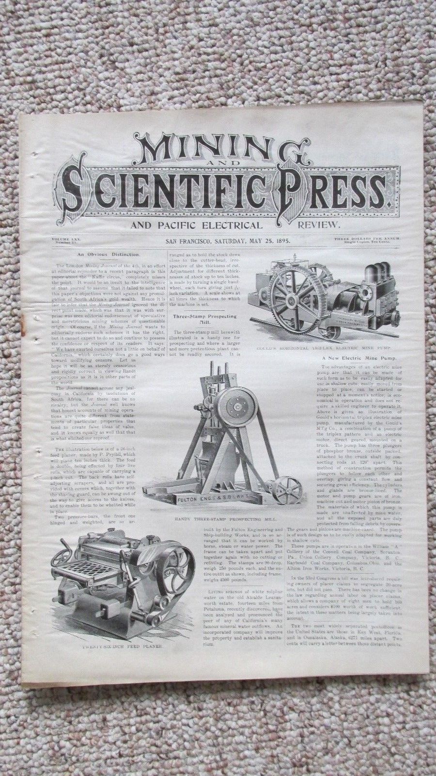 1895 Mining & Scientific Press- Pacific Electrical Review-Miners Spoon-Equipment