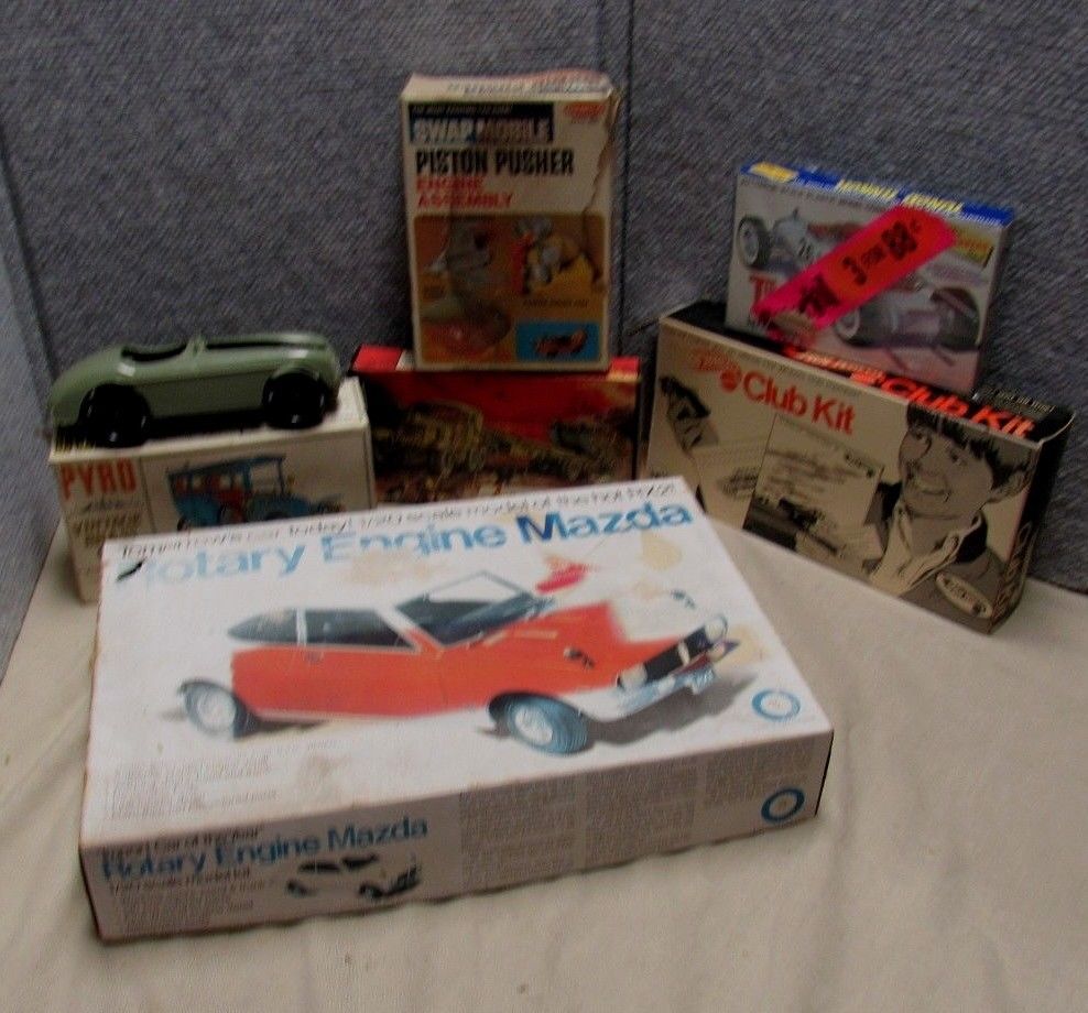 Title (ebay affiliate link): 3 Vintage Toy Car Model Kits Partial Contents Other Stuff With Boxes & 1 Loose