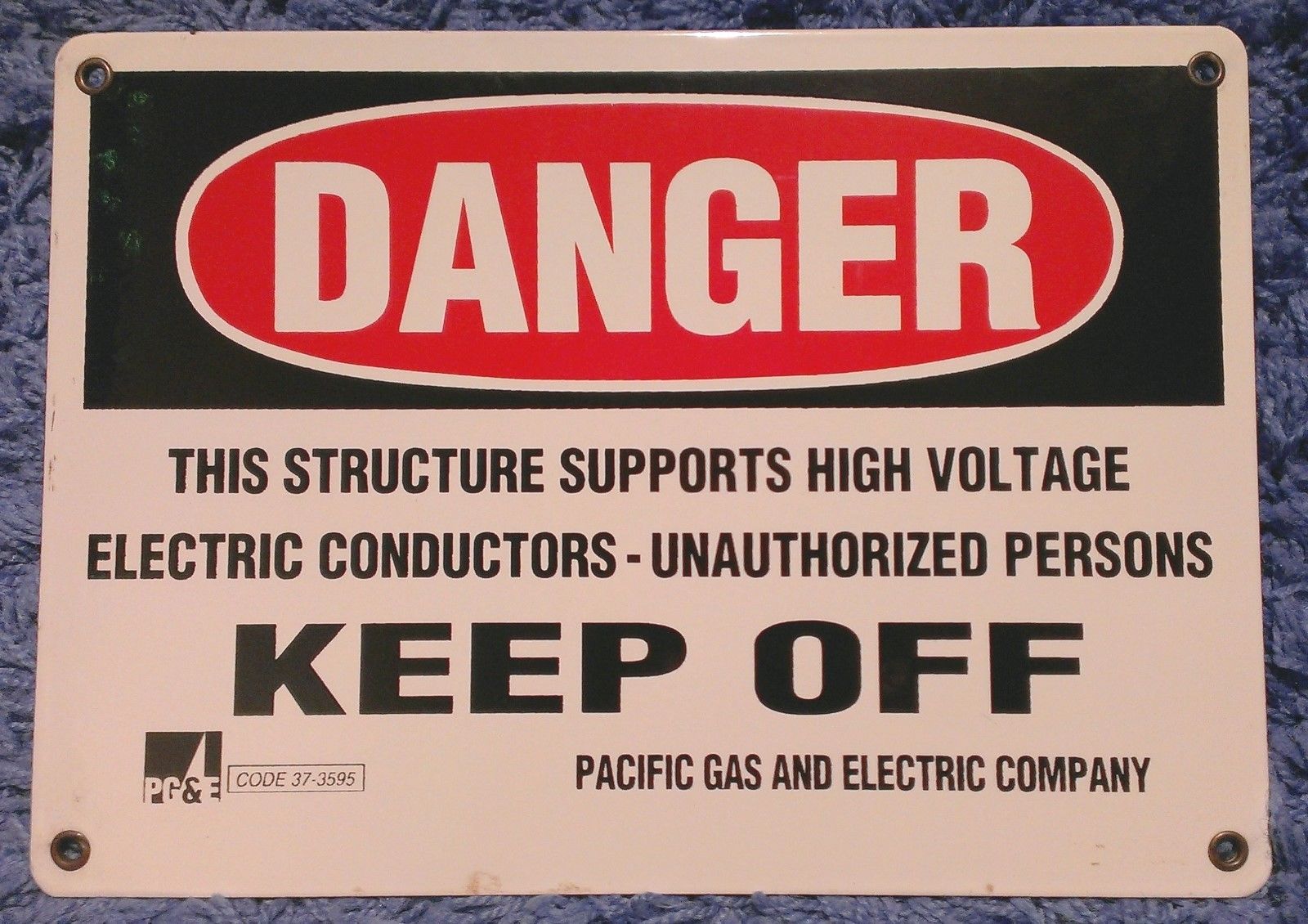 P.G.&E. PORCELAIN DANGER KEEP OFF sign used on High Voltage Transmission Towers