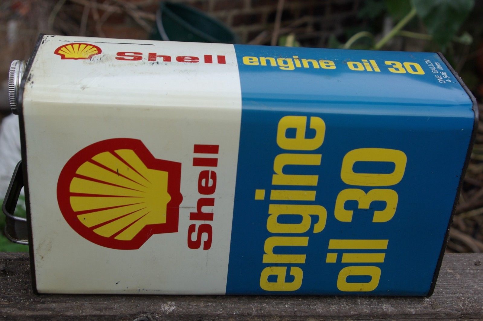 Title (ebay affiliate link): Vintage 60''s SHELL ENGINE OIL 30 1 Gallon can good condition for age