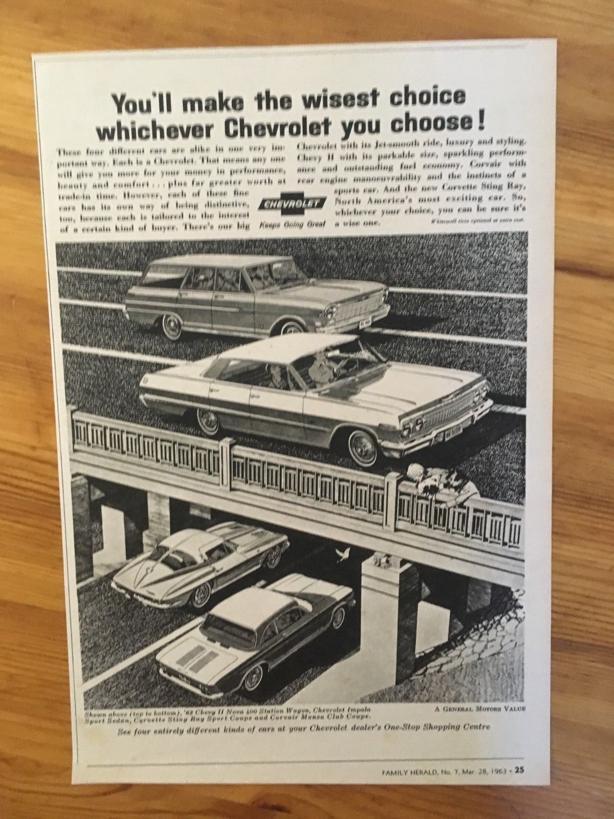 STUNNING 1963 CANADIAN CHEVROLET CAR AD CORVAIR NOVA BEL AIR IMPALA CORVETTE