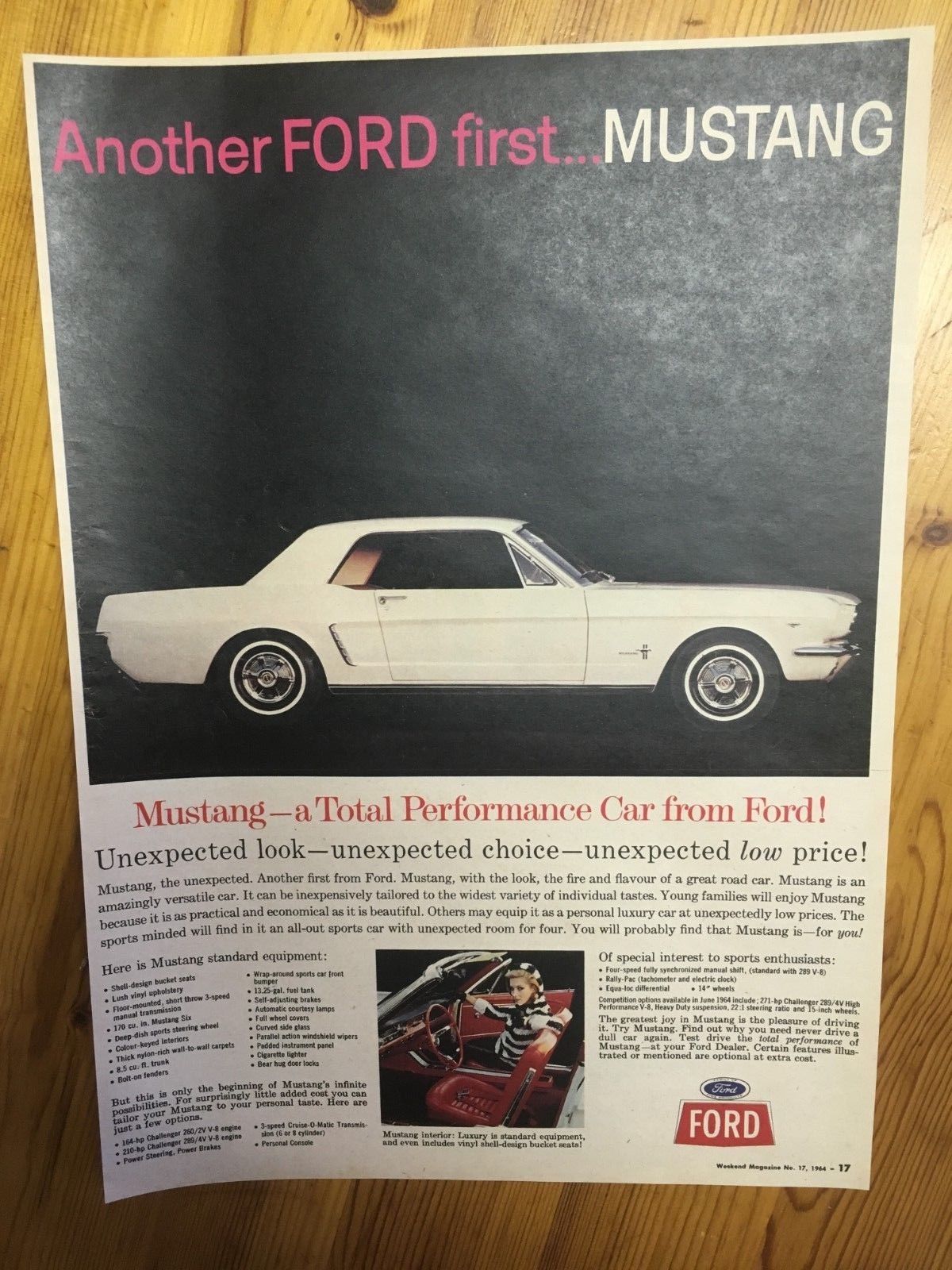 Title (ebay affiliate link): SUPER RARE VERY FIRST 1964 FORD MUSTANG CAR AD IN CANADA @RARE@ DETAILED AD