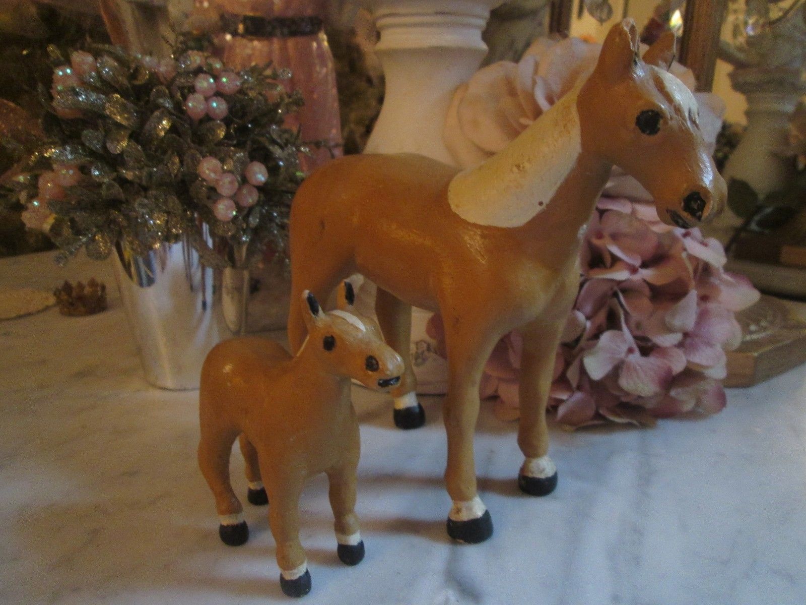 Title (ebay affiliate link): Antique Toy, Hand-Carved, Hand Painted Wooden Horse & Pony Set, 1901