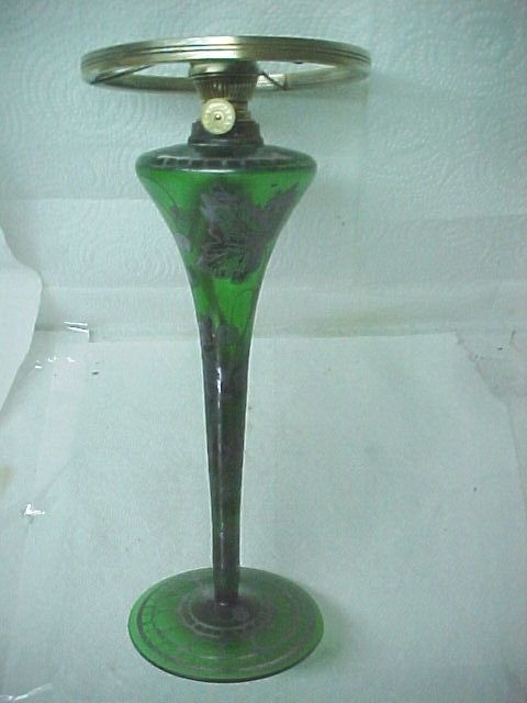 Title (ebay affiliate link): Mini Antique Art Glass Oil Lamp Loetz Style Sliver Overlay