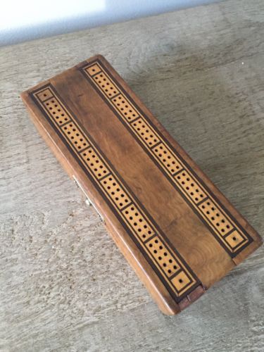 Antique Walnut Satinwood Inlay Cribbage Game Board