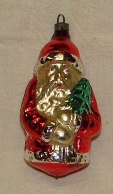ANTIQUE SANTA WITH TREE BLOWN GLASS ORNAMENT