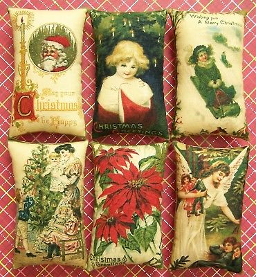6 Primitive Christmas Victorian Grungy Tucks Ornies Bowl Fillers Folk Art Gift