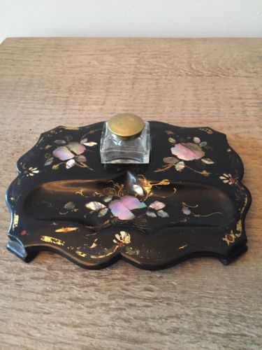 Title (ebay affiliate link): Papier Mache 19th Century Lacquered Inkwell Mother Of Pearl Inlay Box
