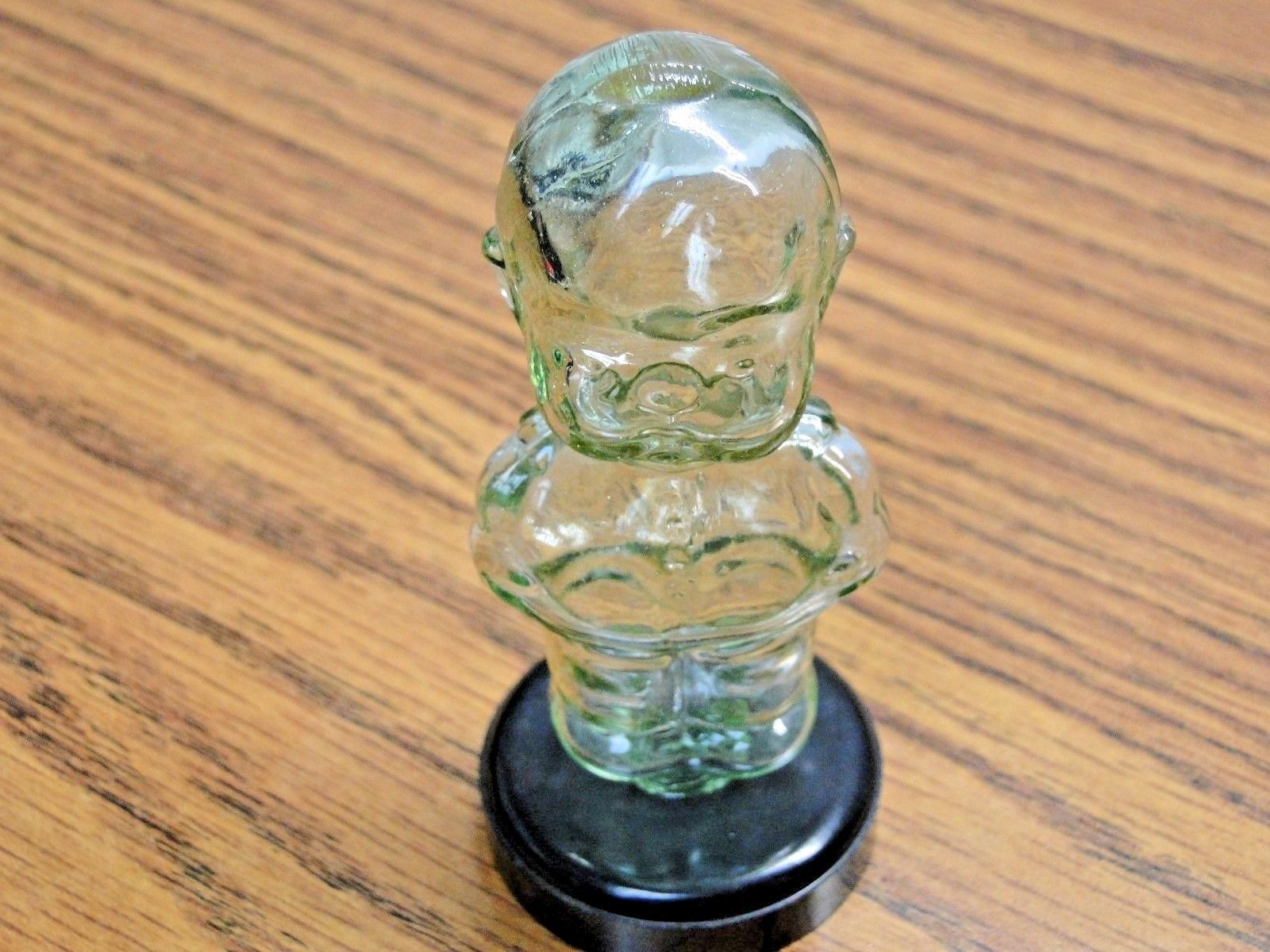Boy Figural Cologne Bottle Green Glass 4" tall