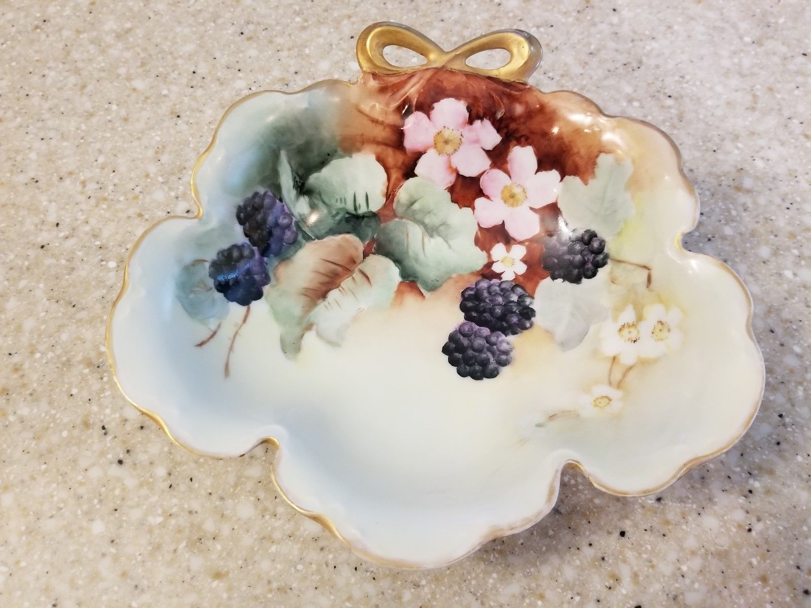 Antique JHR Bavaria Hand Painted Gold Blackberry Fruit Bowl