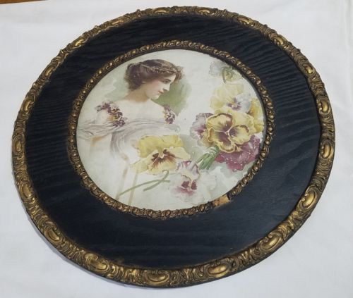 Title (ebay affiliate link): Antique Round Black Picture Frame With Victorian Lady Pansies Shabby Chic Decor