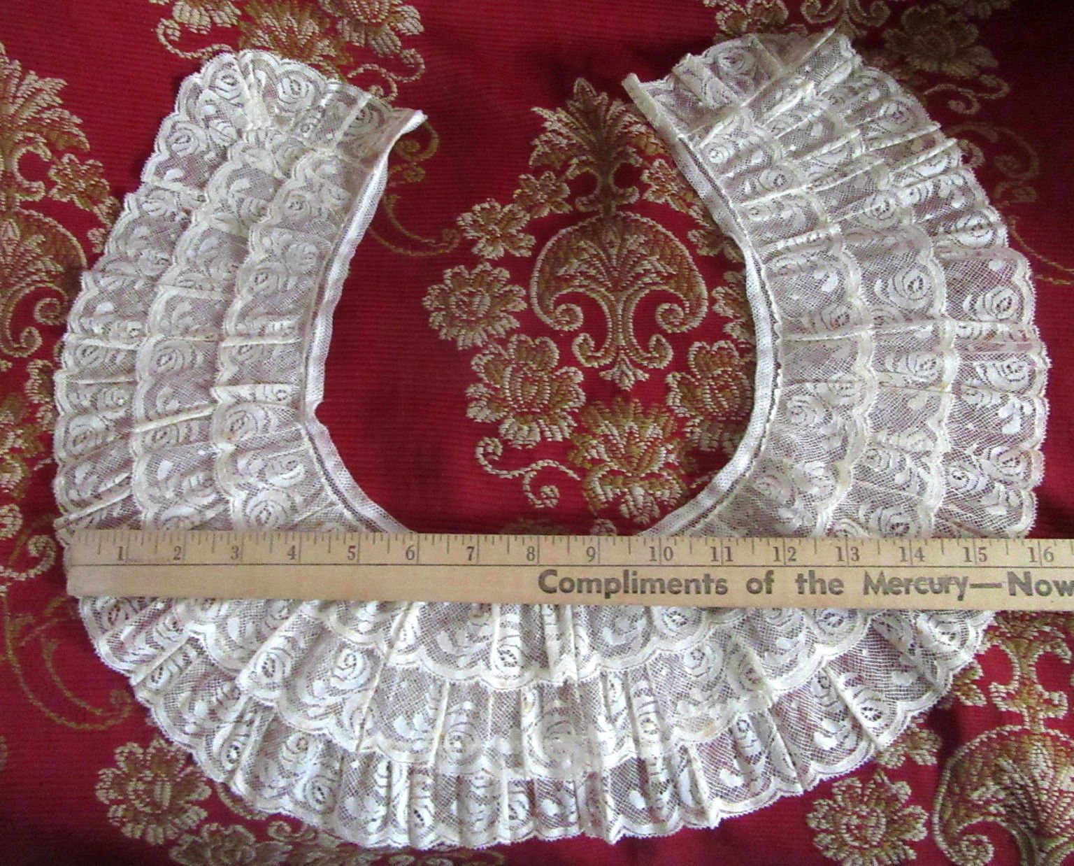 Title (ebay affiliate link): Antique French LACE 3 tier on net Bertha Collar Valenciennes Scalloped TRIM DOLL