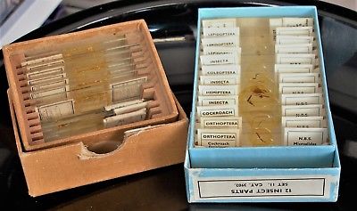 Title (ebay affiliate link): 2x Boxes (12 each) of MICROSCOPE SLIDES,12 Petrology & NBS Insect parts set