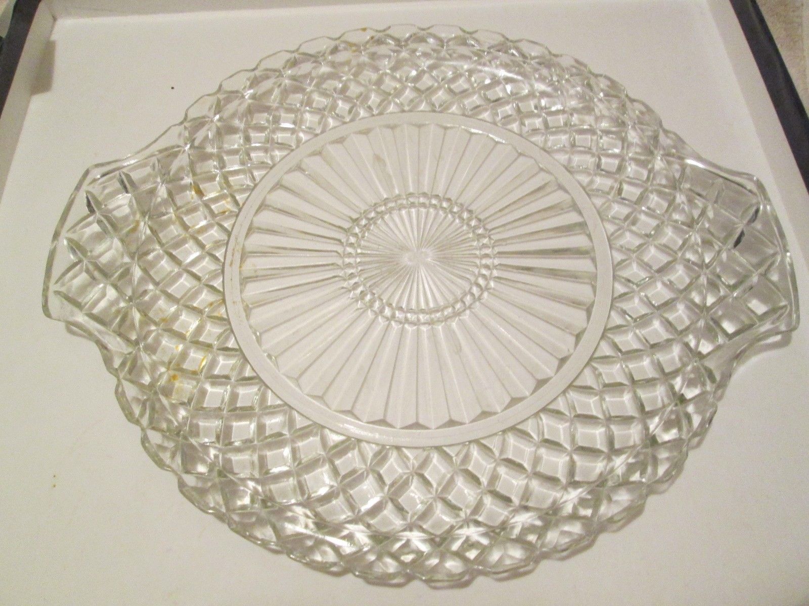 Title (ebay affiliate link): Depression Glass 10" Round Wexford 2 Handled Serving Cake Plate Gently Used