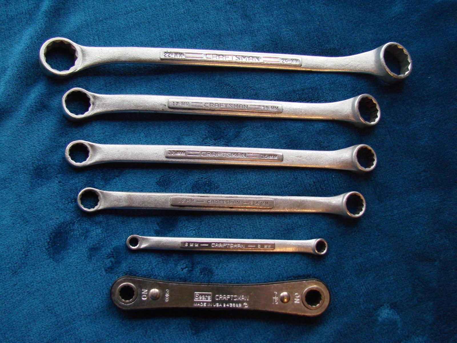 Title (ebay affiliate link): Vintage Lot of 6 Craftsman V series metric box end wrench set and Box Racthet.