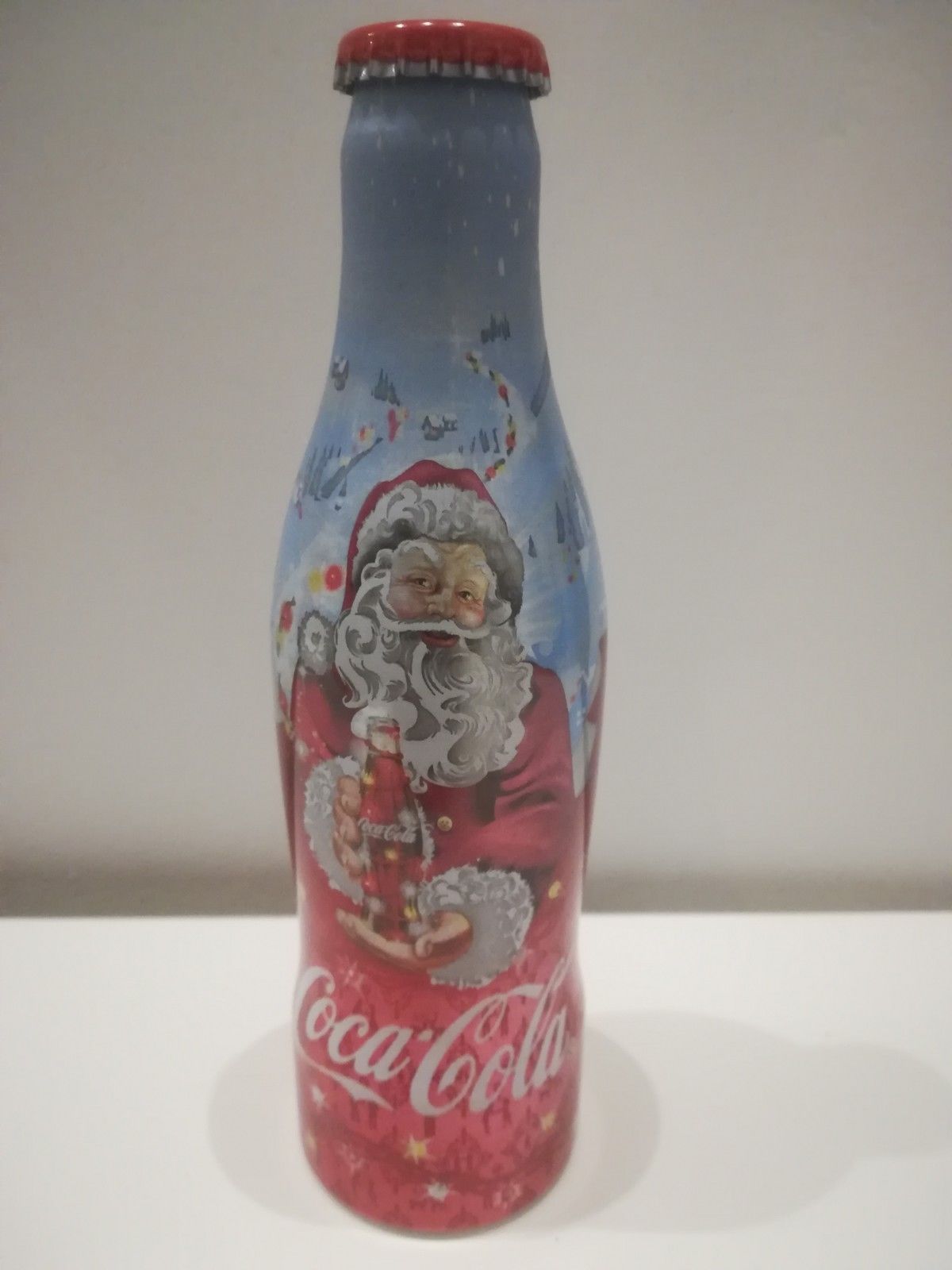 Title (ebay affiliate link): Rare Coca-Cola Alu Aluminium full bottle 2008 Christmas Hungary