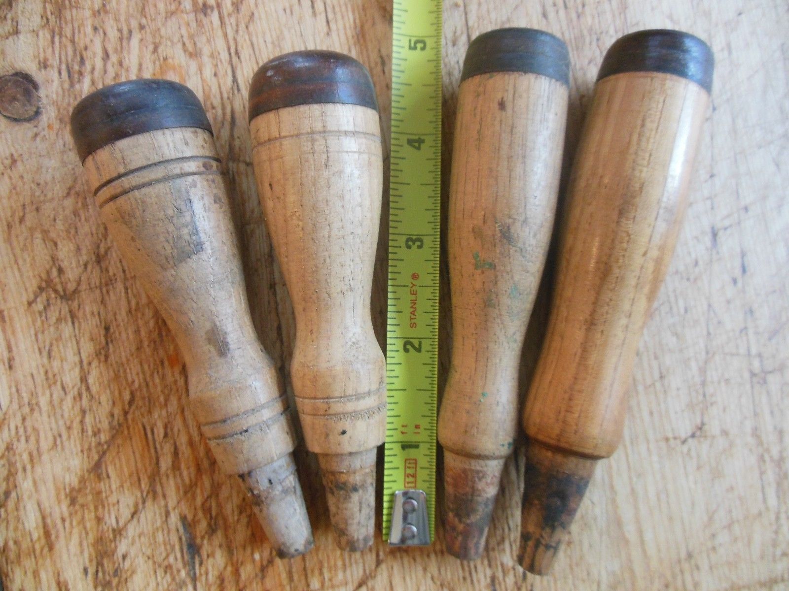 Vintage lot of (4) Socket Wood Chisel Handles, Leather Tops