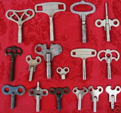 16 Antique Wind-up Clock Keys