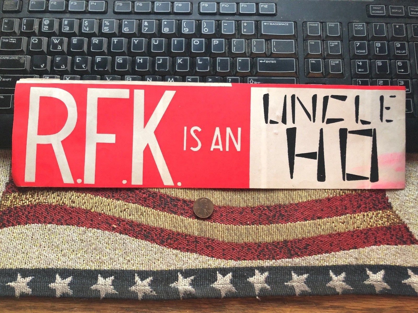 Title (ebay affiliate link): JOHN BIRCH SOCIETY ANTI-COMMUNISM BUMPER STICKER R.F.K. I AN UNCLE HO 1960''s