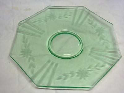 GREEN DEPRESSION GLASS OCTAGON SHAPE SERVING PLATE 10"