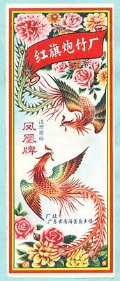 PHOENIX BRAND RED FLAG FIRECRACKER LABEL CHINA