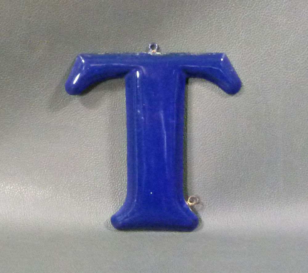 Vtg German Cobalt Blue Porcelain Enamel Tin Sign Industrial Gas Station Letter T