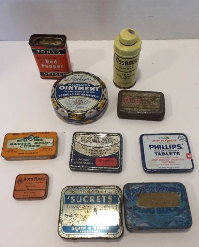 Assortment Of 11 Old Antique Medical, Tobacco Tins