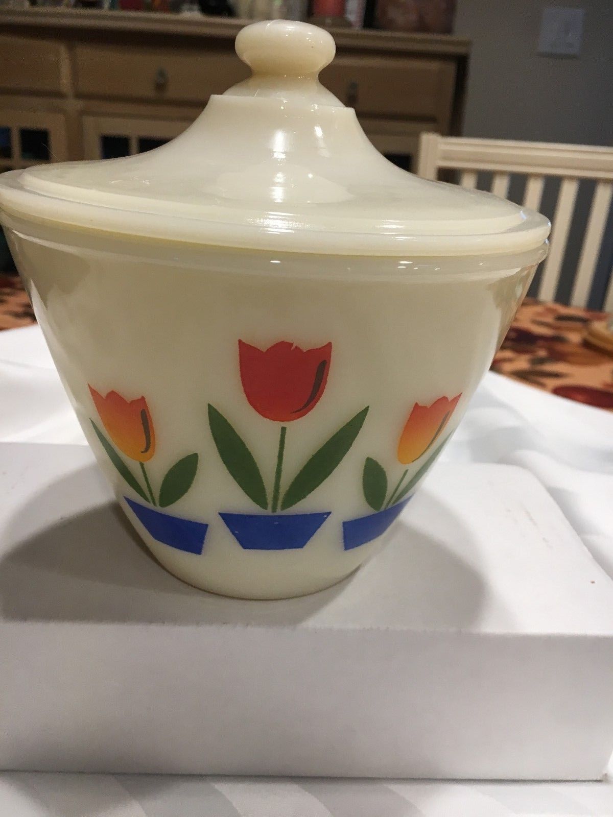 Vintage Fire King Milk Glass TULIP GREASE JAR with LID
