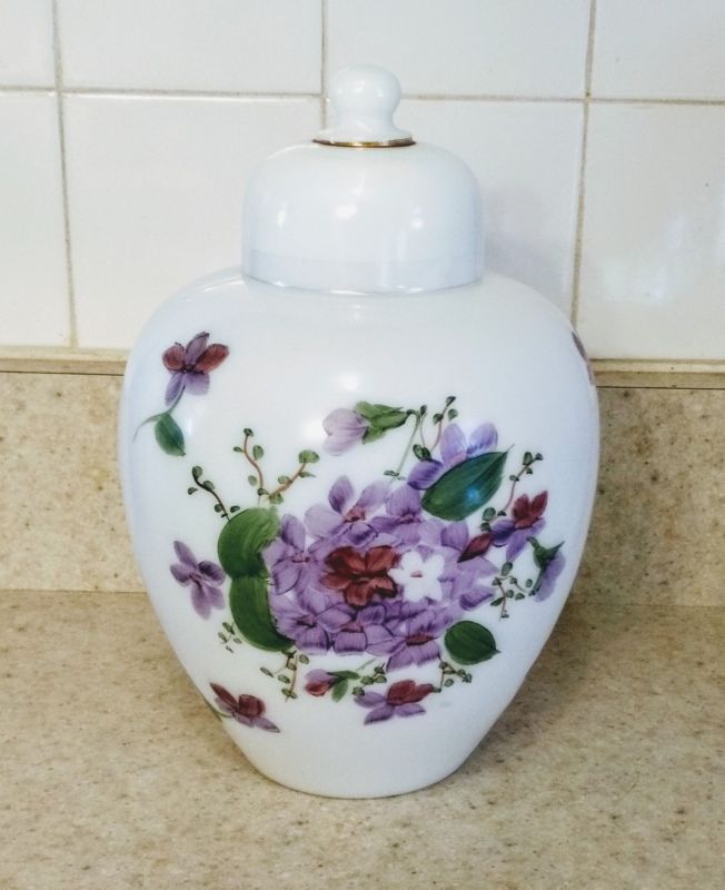 Title (ebay affiliate link): Vintage Consolidated Glass Vase Ginger Jar Regent Line Violets Milk Glass 9.5"