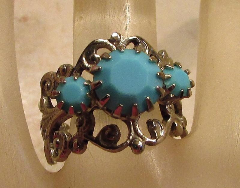 Title (ebay affiliate link): Vintage 50''s Chunky Milk Glass Rhinestone Cocktail Adjustable Ring Blue
