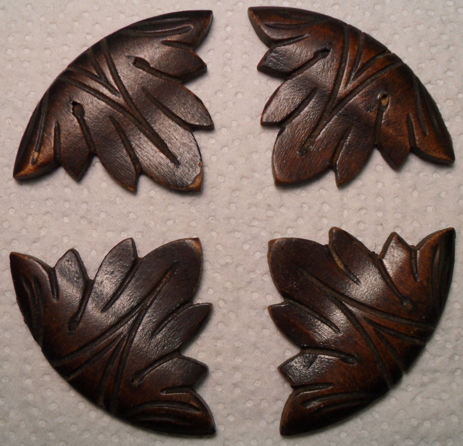 Title (ebay affiliate link): 4 Antique Fancy Carved Oak Decorative Furniture Accents Deco Leaf Hardwood