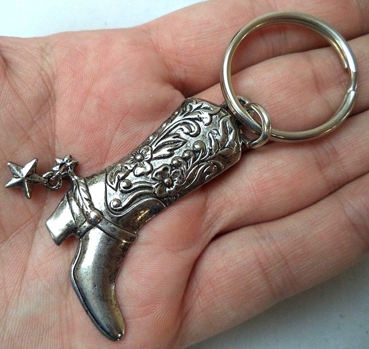 Title (ebay affiliate link): VINTAGE ESTATE SILVER TONE FLORAL PATTERN COWBOY BOOTS 3 5/8" KEYCHAIN!!! 5189R