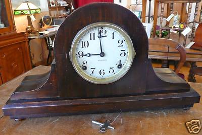 Antique Ingraham Haddon Tambour Mantle Shelf Clock