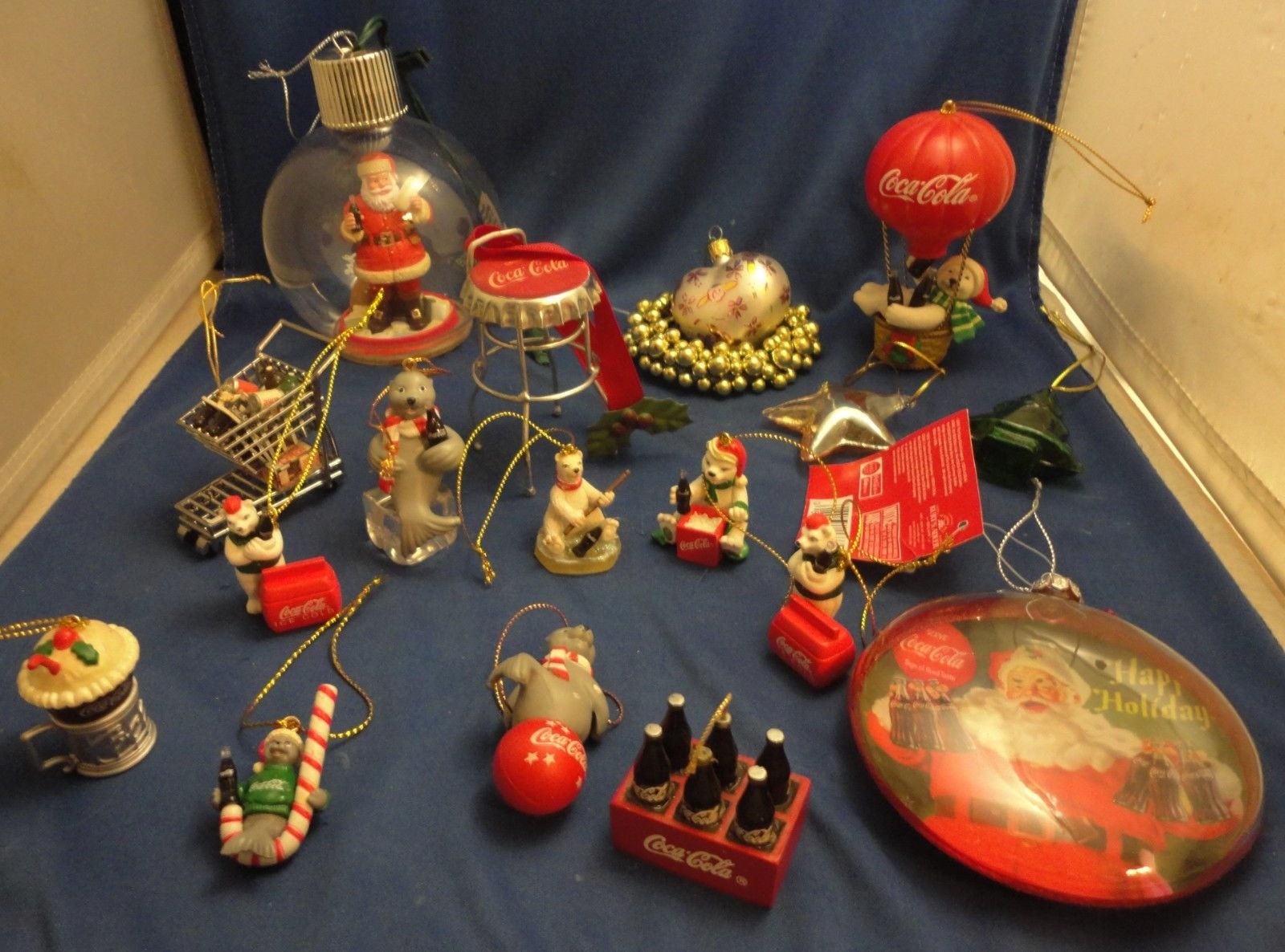Title (ebay affiliate link): 14 Coca Cola Ornaments LOT Santa Polar Bears Seals Cart Stool Hot Air Balloon ++