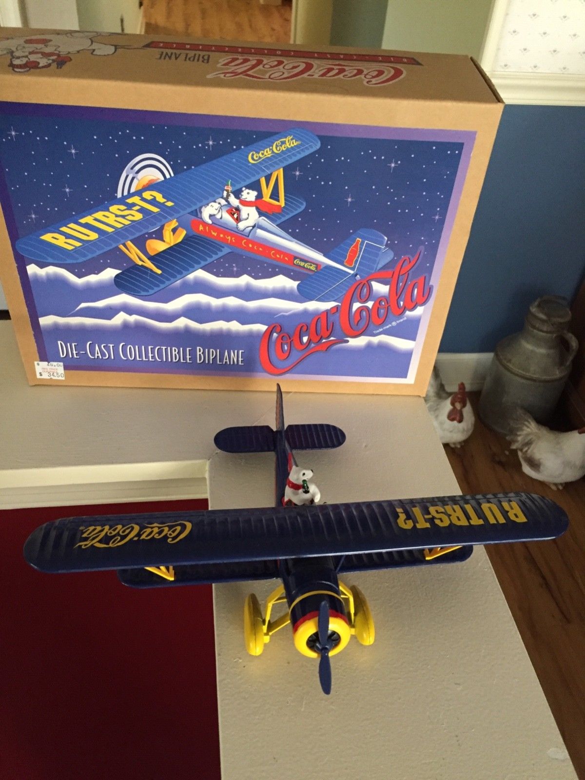ertl coca cola die-cast collectible biplane airplane bank in box
