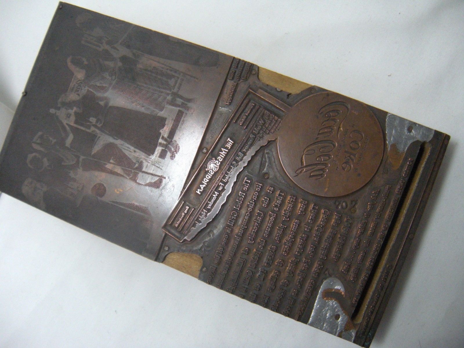 Coca Cola 1950 Copper Printing Plate University Mississippi Rebel Grill Ole MISS